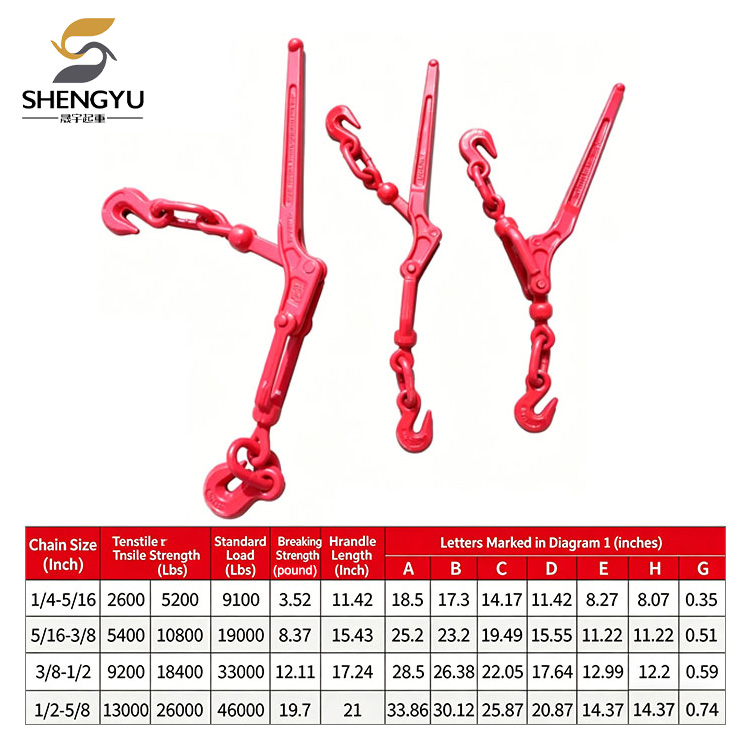 Hebei Shengyu Lifting Lever load binder is forged from high-strength alloy steel, making it wear-resistant and durable. It is equipped with an 80G lifting chain and a die-forged alloy steel hook with a safety latch to prevent disengagement. This complete lever-type tensioner system increases safety by 50% during use. For inquiries or purchasing plans, please call 15133220073 (WeChat available), or email sherry@syhoist.com. Inquiries are welcome at any time.