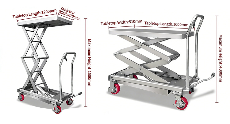 2. Structural and functional customization: Manual or electric/hydraulic power options are available, along with additions such as folding guardrails and omnidirectional silent wheels. Foldable body designs are available for confined spaces, and explosion-proof designs can be added for hazardous environments.